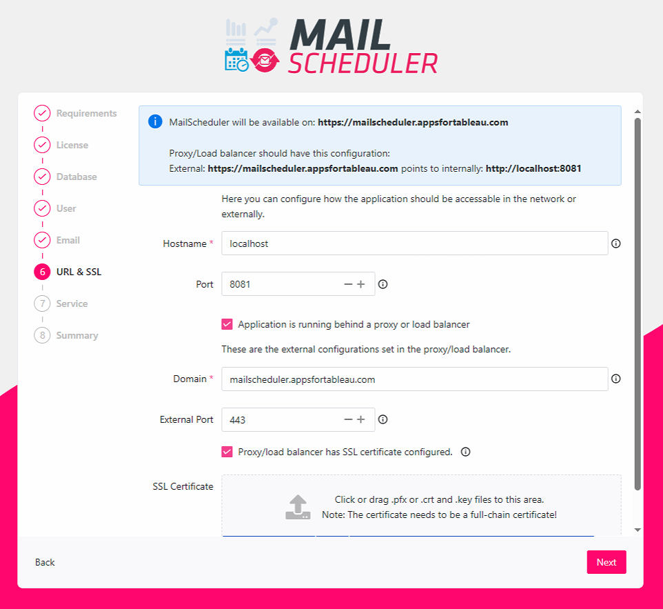 The final step is the configuration of the domain the application will be running on. There are 2 possible setups: