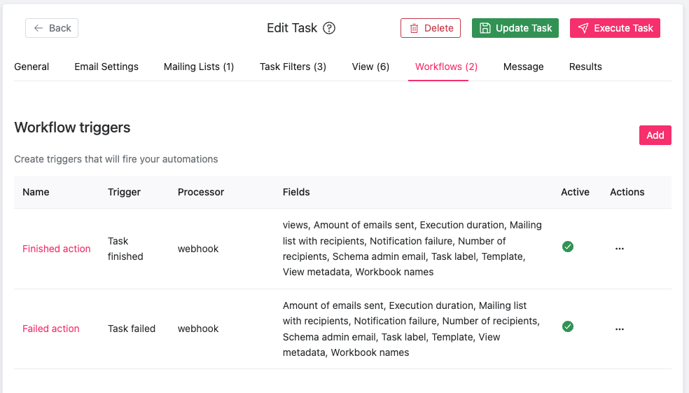 Mailscheduler supports Workflow actions. These workflows can currently be triggered when a task finishes, or when a task fails. To access the workflows, go to the Edit Task page.