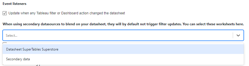 Here, you can choose on what events the SuperTable should be updated from the dashboard