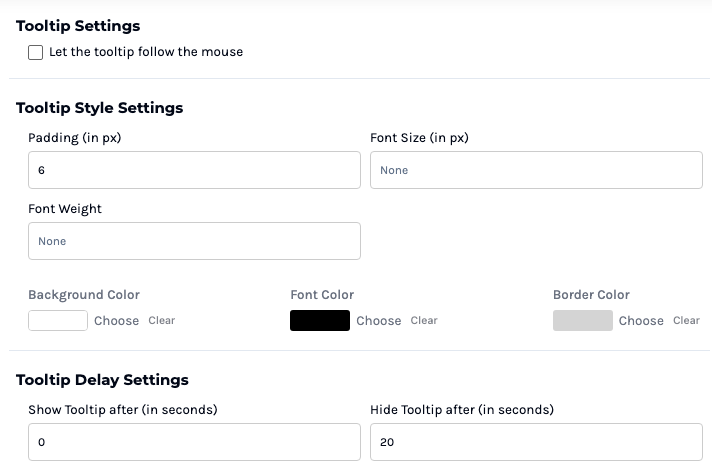 Border Color: Determines the Border color of the tooltip, by default grey.