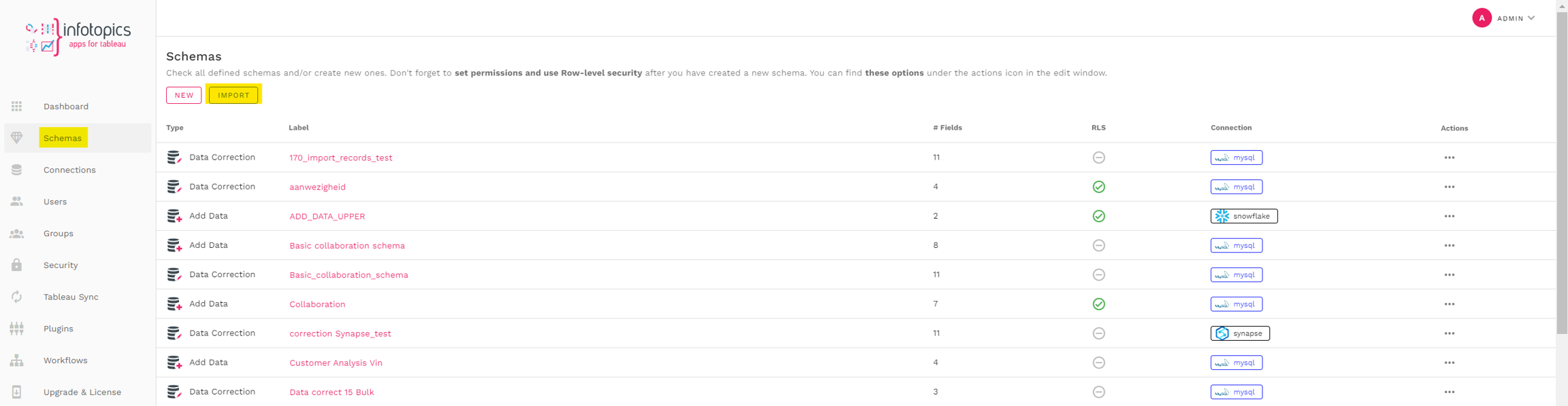To import a schema to your environment head to the schema tab and you will see an import button.
