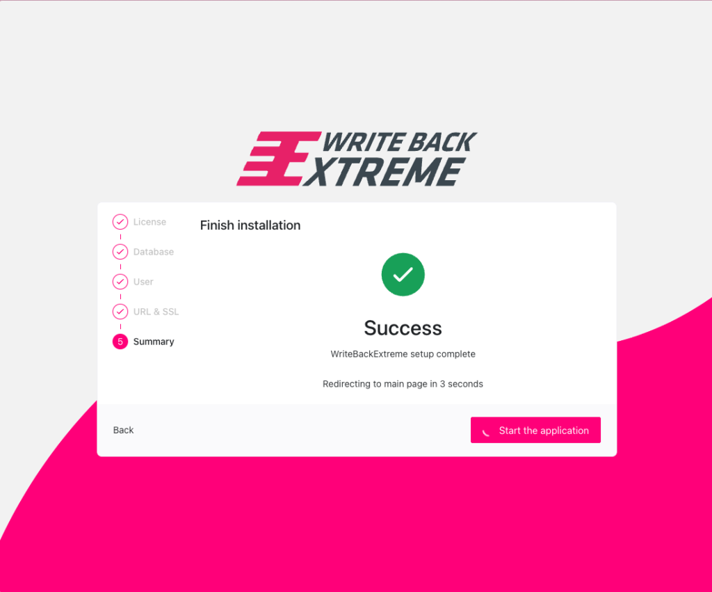 A summary will be shown and WriteBackExtreme will install and start whenever you hit Start the Application.