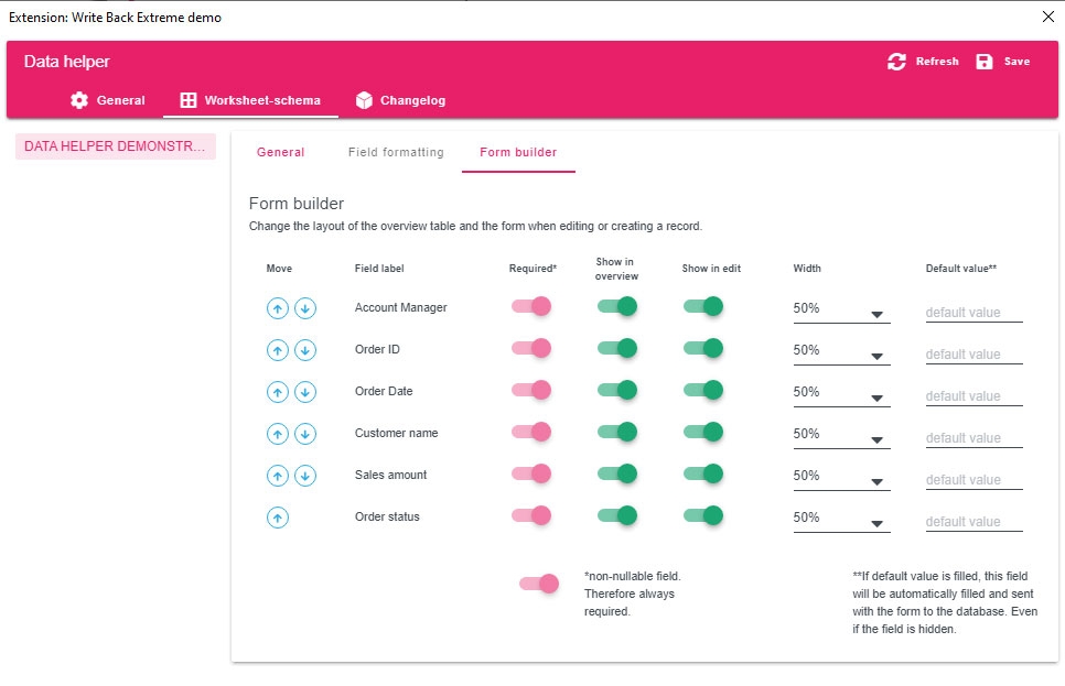 The behavior of the instance of the WriteBackExtreme extension in the dashboard can be configured in multiple ways. For example, you can choose between an extension as a tiled dashboard container (classic) or you can display the extension in a floating (pop-up) container and toggle it automatically with a button or mark selection. Whatever nature of your use-case, WriteBackExtreme has got it covered!