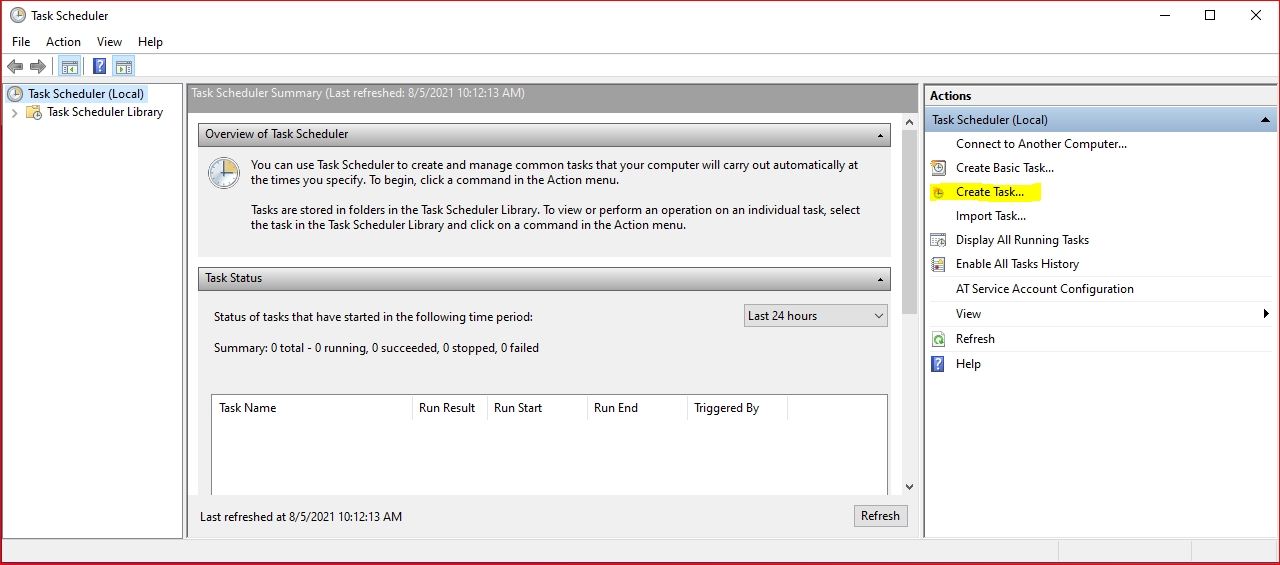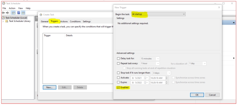 The easiest way to have the extension started automatically as a service is to create a task in Windows Task scheduler. The trigger of the task must be configured to “System boot” and it is best run under System Credentials. Below the steps to follow.