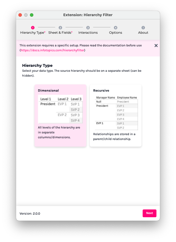 The next thing we need to do is configure the extension to use/visualize the hierarchy and make the dashboard interactive.