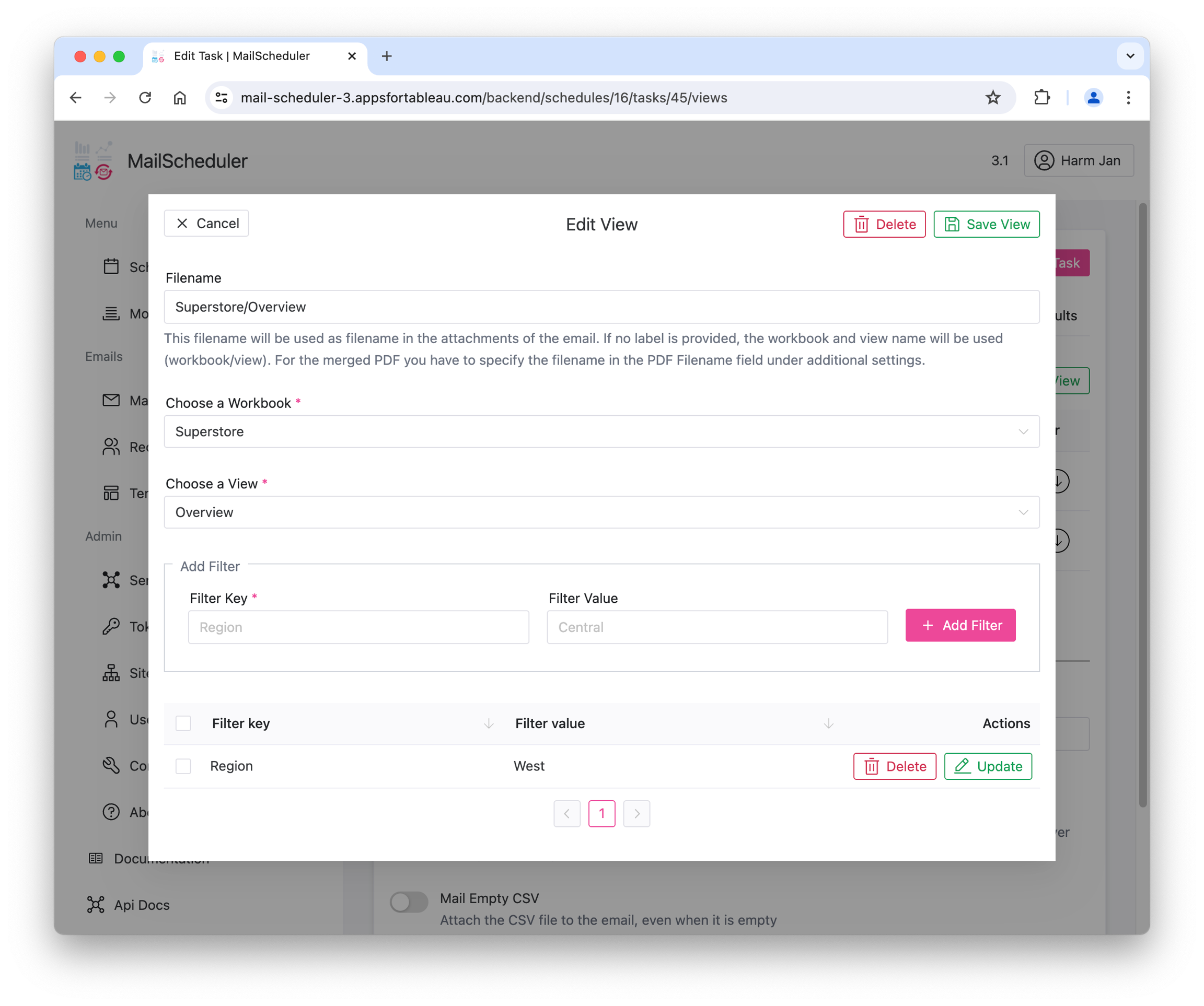 It's important to note that the MailScheduler typically uses at least one service account's (usually an admin) Personal Access Token (PAT) of that Site. As a result, specific features, such as personal views or some form of login based RLS, are not feasible with this configuration. With MailScheduler you can however send individually filtered dashboards by using filters.