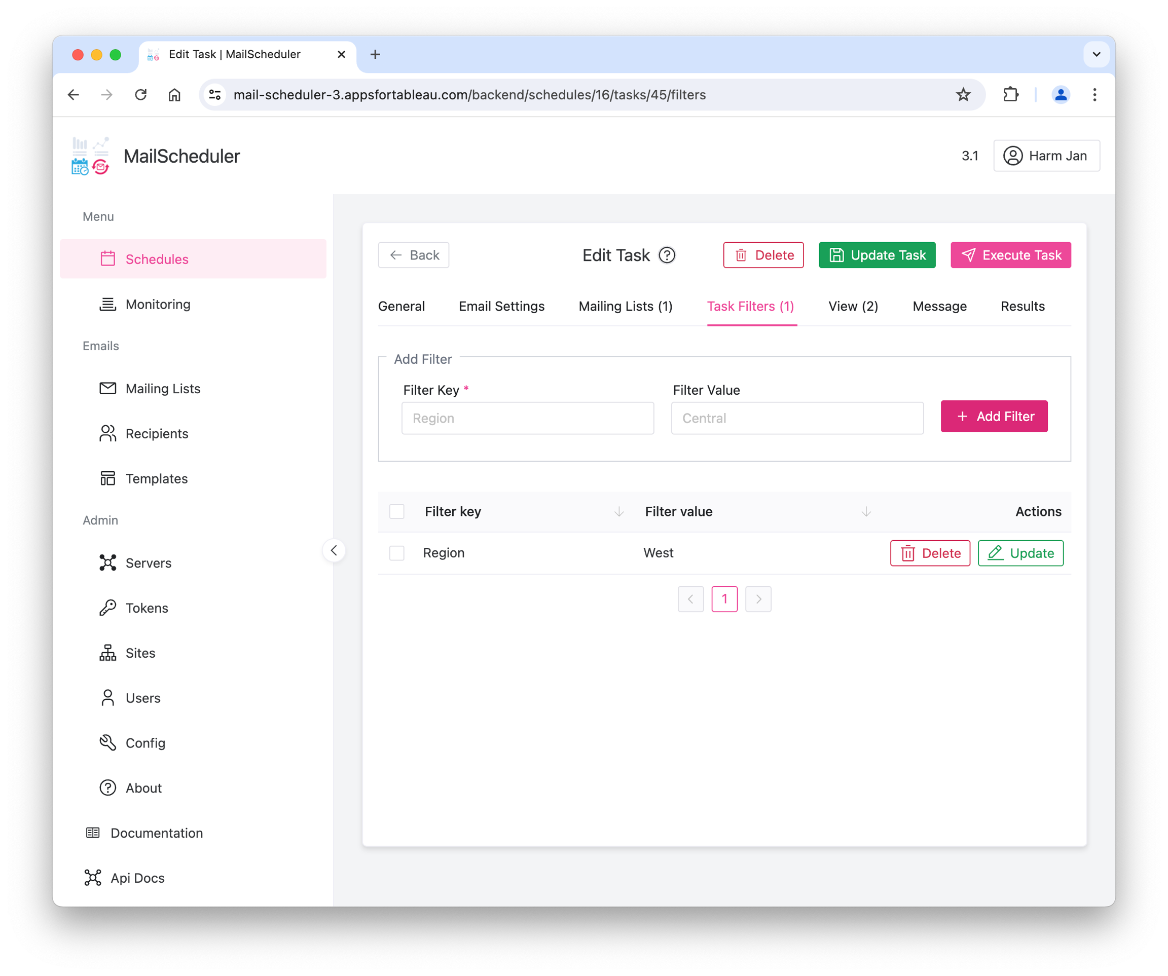 A recipient can have specific filter values attached to it. This filter will apply when a Task or View specifies a Filter Key corresponding to the recipient's Filter Key while leaving out the Filter Value.