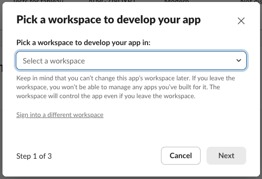 Choose the workspace you want Mailscheduler to be able to send messages to, and press next.
