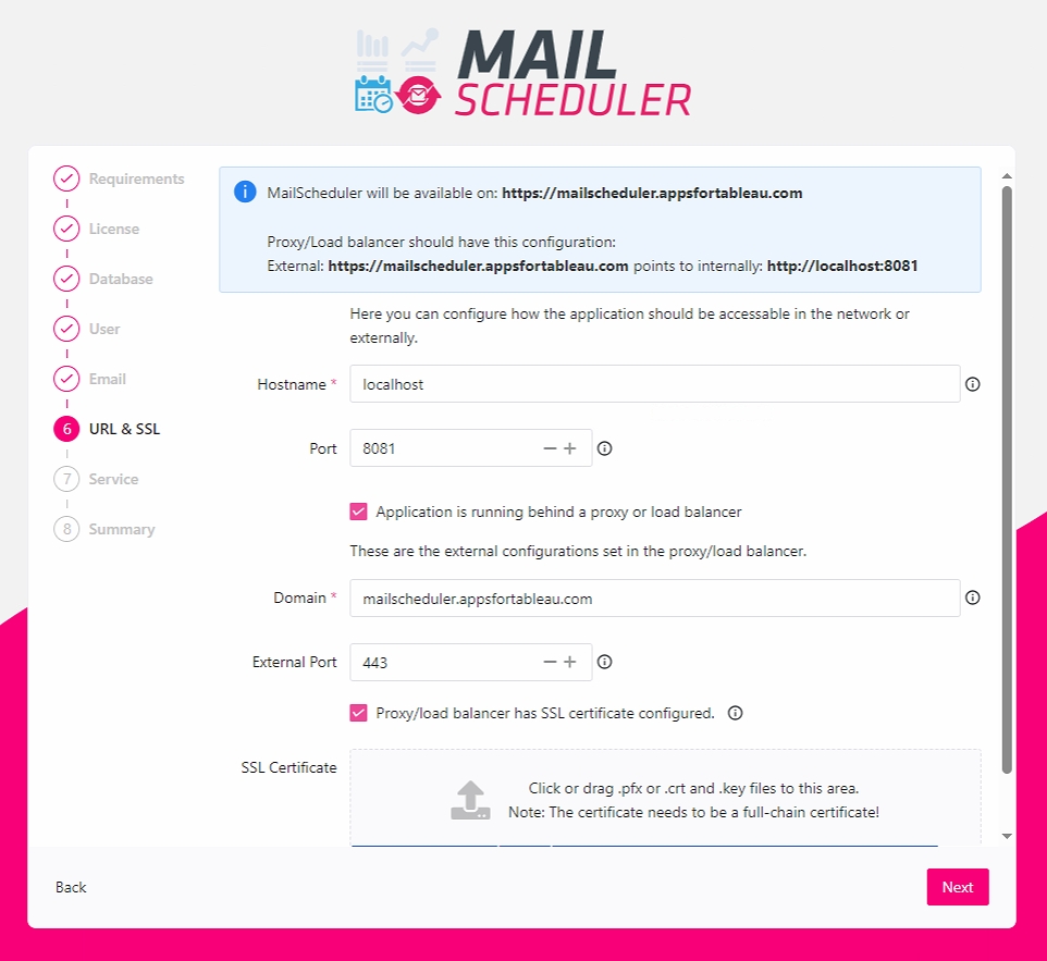 The final step is the configuration of the domain the application will be running on. There are 2 possible setups: