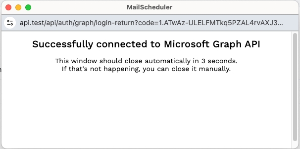 Finally, click 'Save MS Graph Settings', and then press 'Authenticate with Microsoft Graph'. This will will open up a dialog, where you need to log in with the account that you want to use to send emails and / or Teams messages. It is recommended to create a new 'Mailscheduler' user.