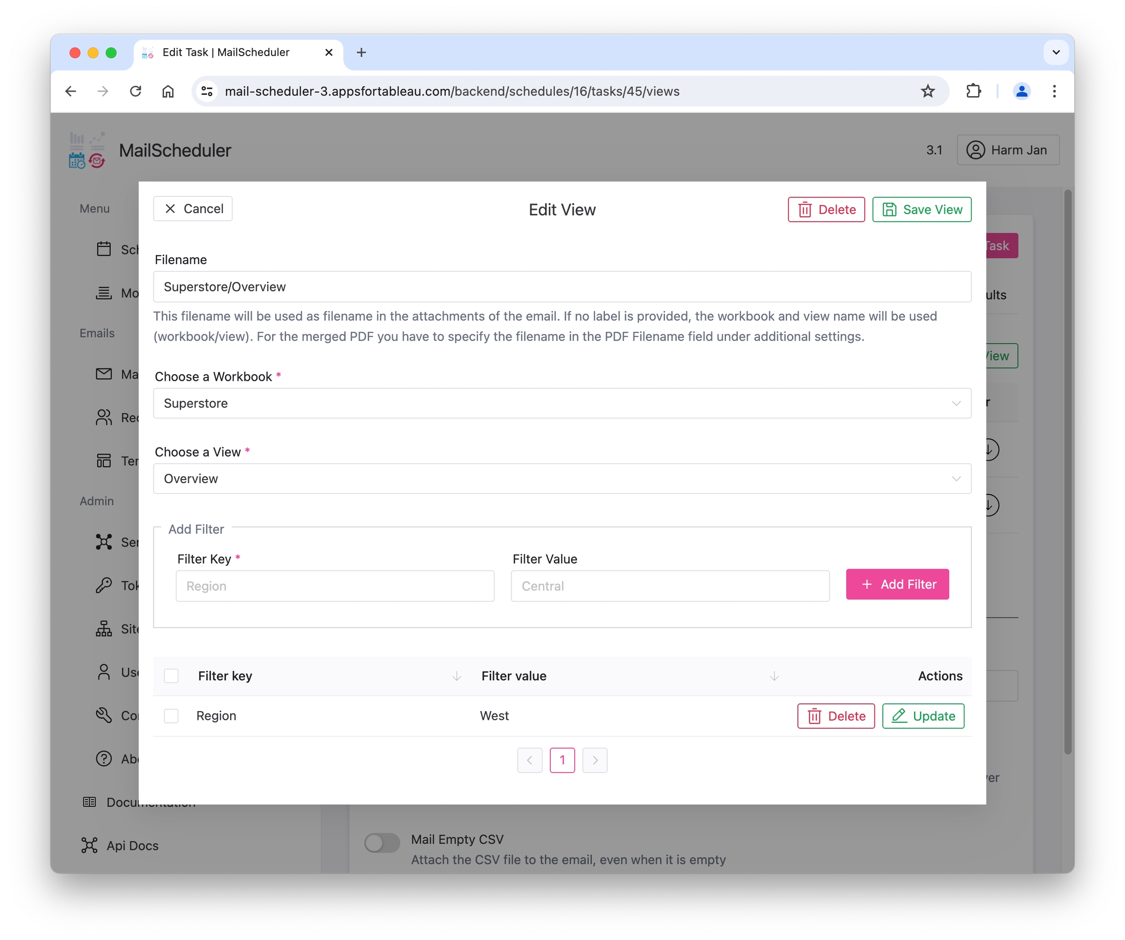 It's important to note that the MailScheduler typically uses at least one service account's (usually an admin) Personal Access Token (PAT) of that Site. As a result, specific features, such as personal views or some form of login based RLS, are not feasible with this configuration. With MailScheduler you can however send individually filtered dashboards by using filters.