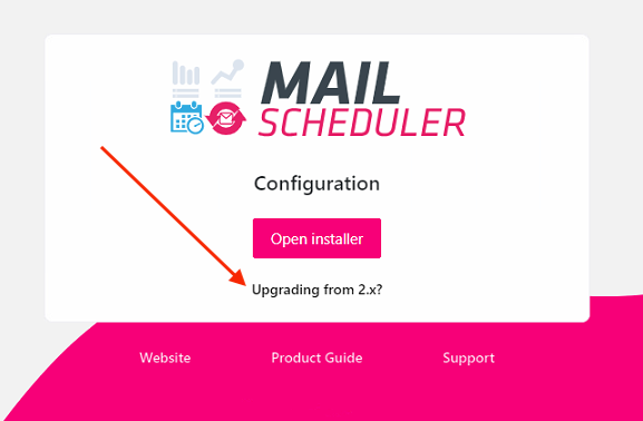 After stopping the old MailScheduler you can launch the new 4.x Installer by double-clicking the application. On the first screen, select Upgrade from 2.x? the link.