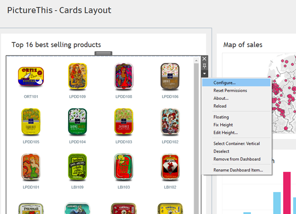 Once you have created your datasheet and added it to your dashboard you can start adding your extension to the dashboard. Use the dropdown menu of the container that holds your extension and select the “Configure” option.