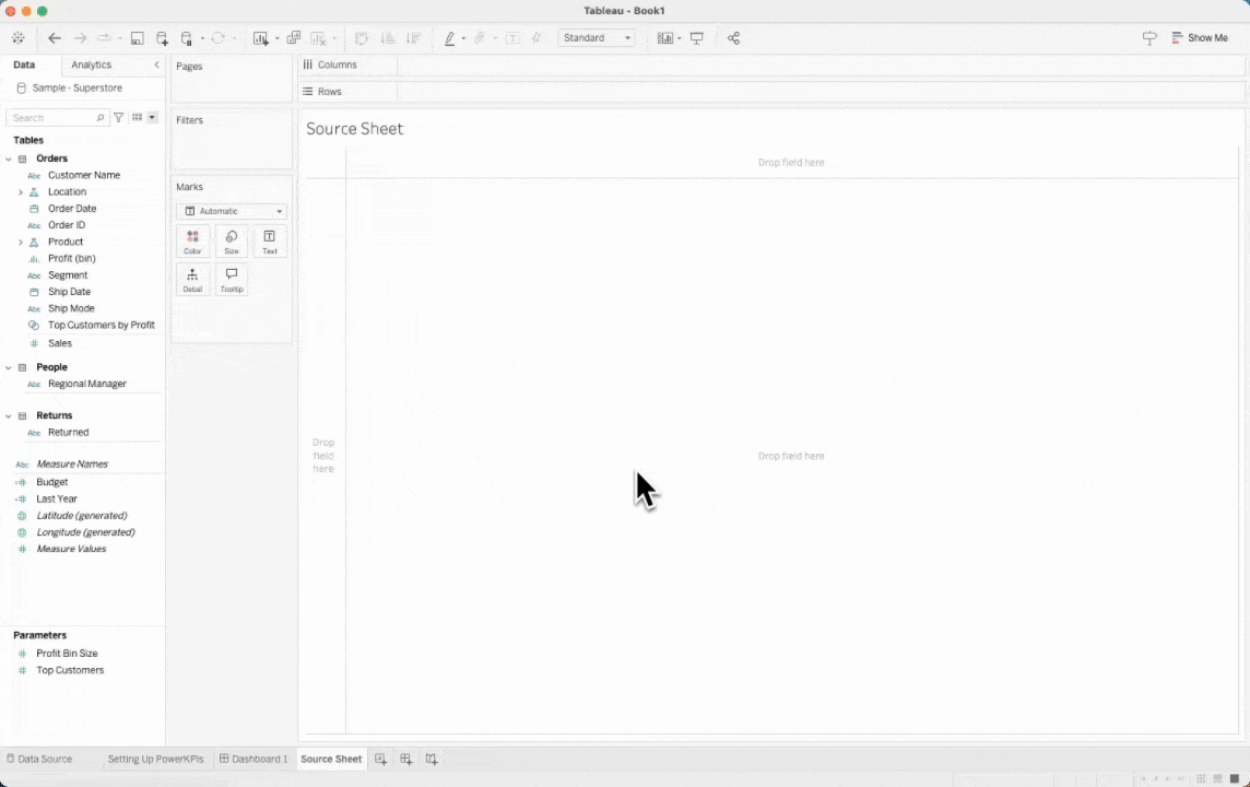 If you are using the PowerKPIs dashboard extension, you need to create a source sheet first.