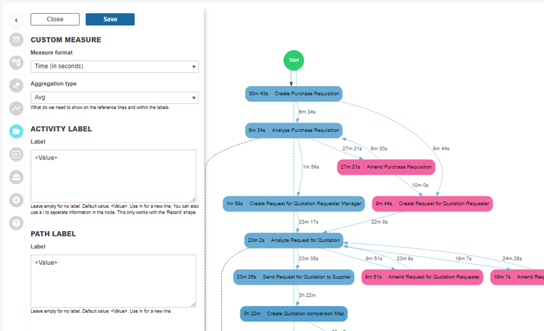 If you decided to use a custom measure / KPI that is not part of the basic ProcessMining KPI’s, this is where you can format the custom KPI.