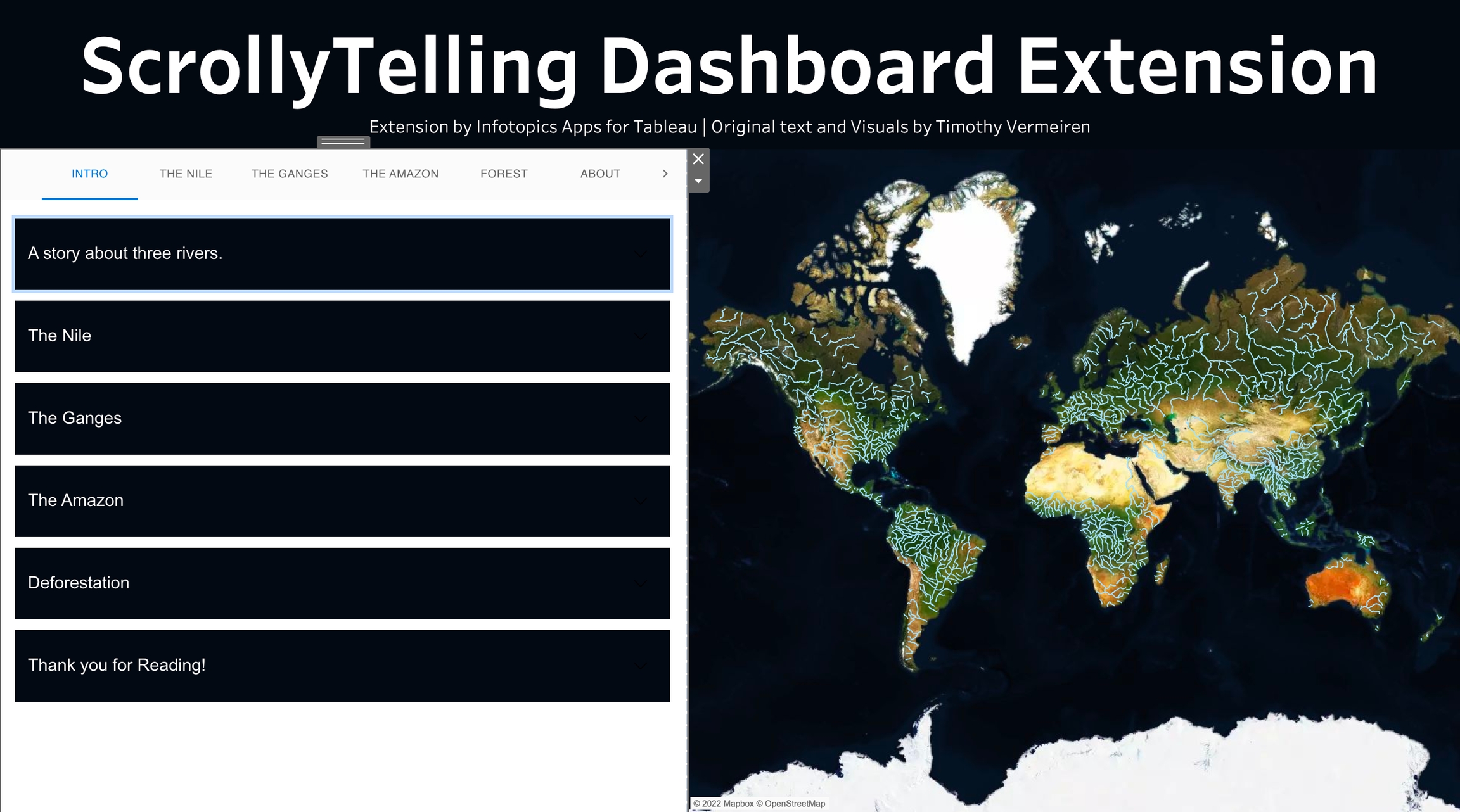 New to ScrollyTelling is Accordion sections. Accordion sections will be presented in collapsible headed sections. This allows a more condensed and details story in to a smaller area. Using the section option will give you a continuous story which can be sectioned off with H1 headers for example.