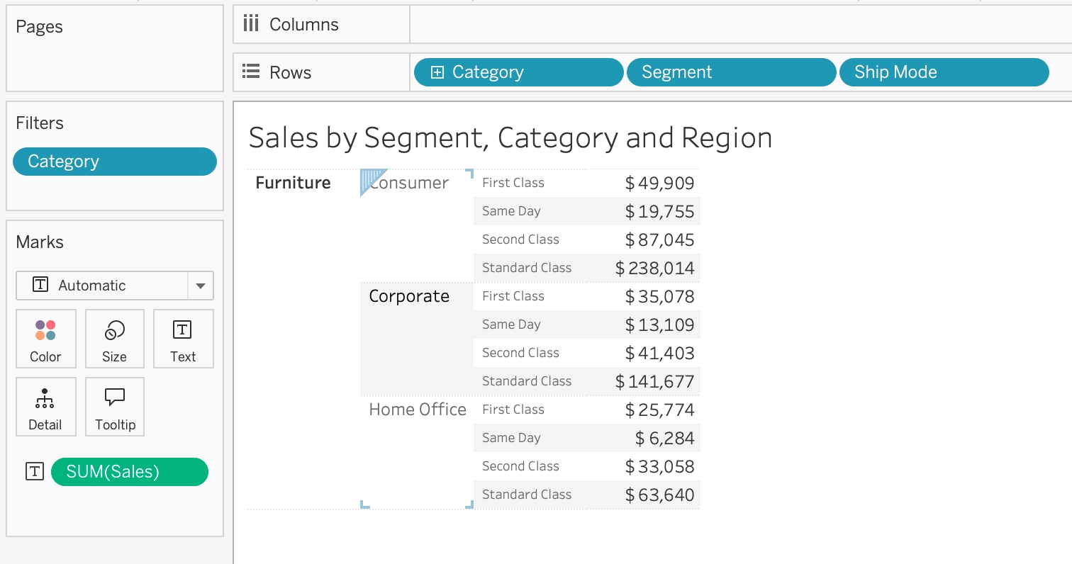 If an item within a dimension is null, for example, let's assume the "Corporate" segment is null, then the Sankey diagram will interpret this as a skipped level. In such instances, the link or flow will bypass the "Corporate" segment entirely and connect directly from the preceding dimension, such as the category, to the following dimension, like the ship mode.