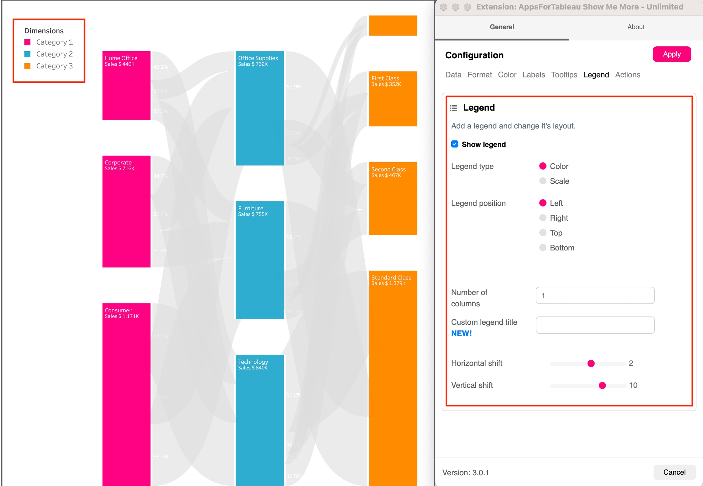 Decide how many columns the color legend should show in your view. This will help with the look of your Sankey Diagram.