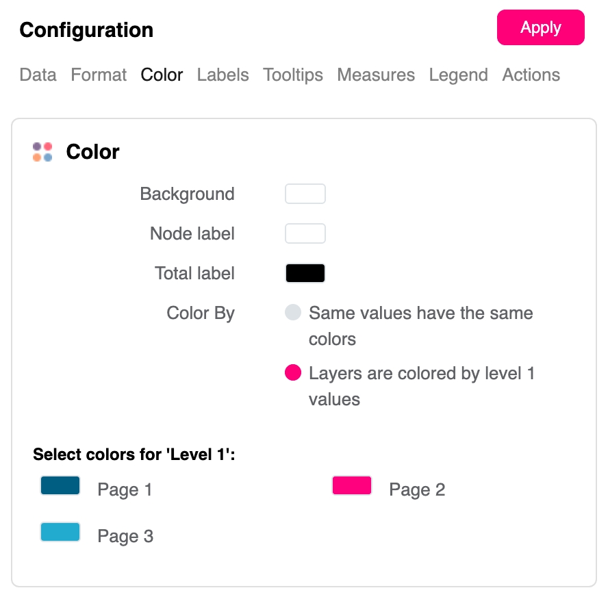Choose either having all values the same color or all to be colored by the ‘level 1’ values