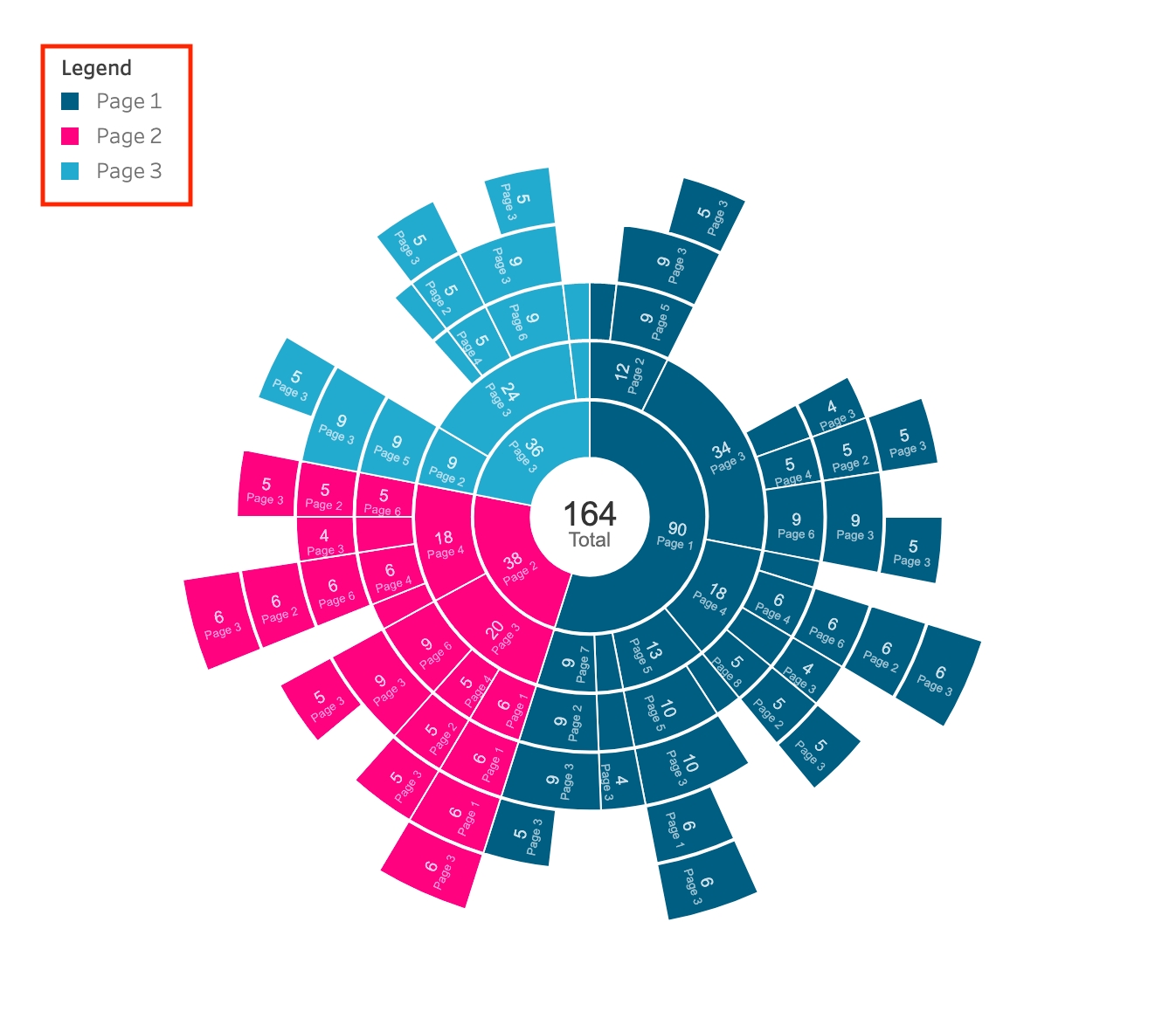 To have a legend in your Sunburst Diagram, tick the ‘Show legend’ button. When having a large selection of dimensions, it may be of benefit to use a color legend to display.