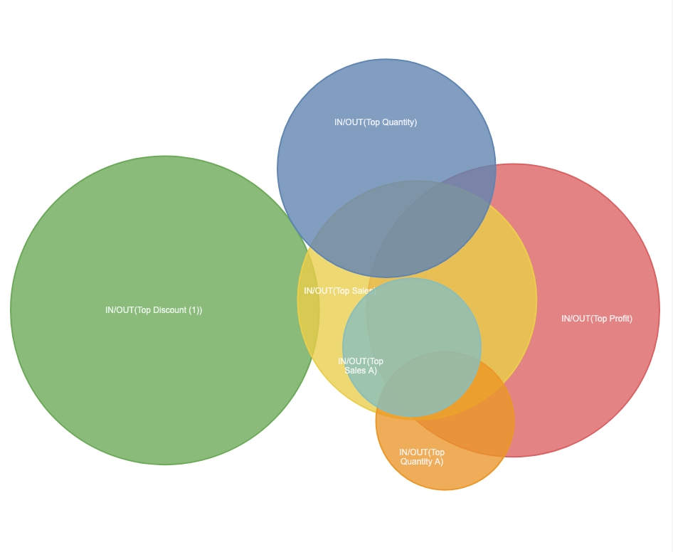 For example, consider a Venn Diagram with three sets: Top Profit, Quantity, and Sales.