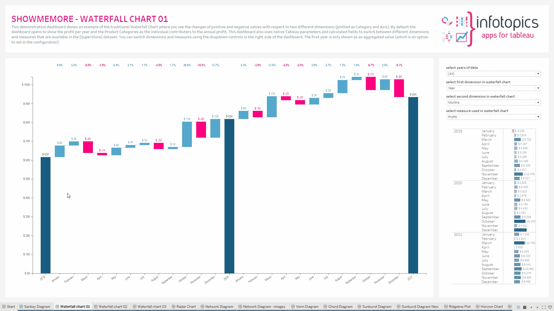 Dashboard actions are available within your Waterfall Chart! Choose one or multiple target sheets. Dashboard actions are supported to and from the extension.