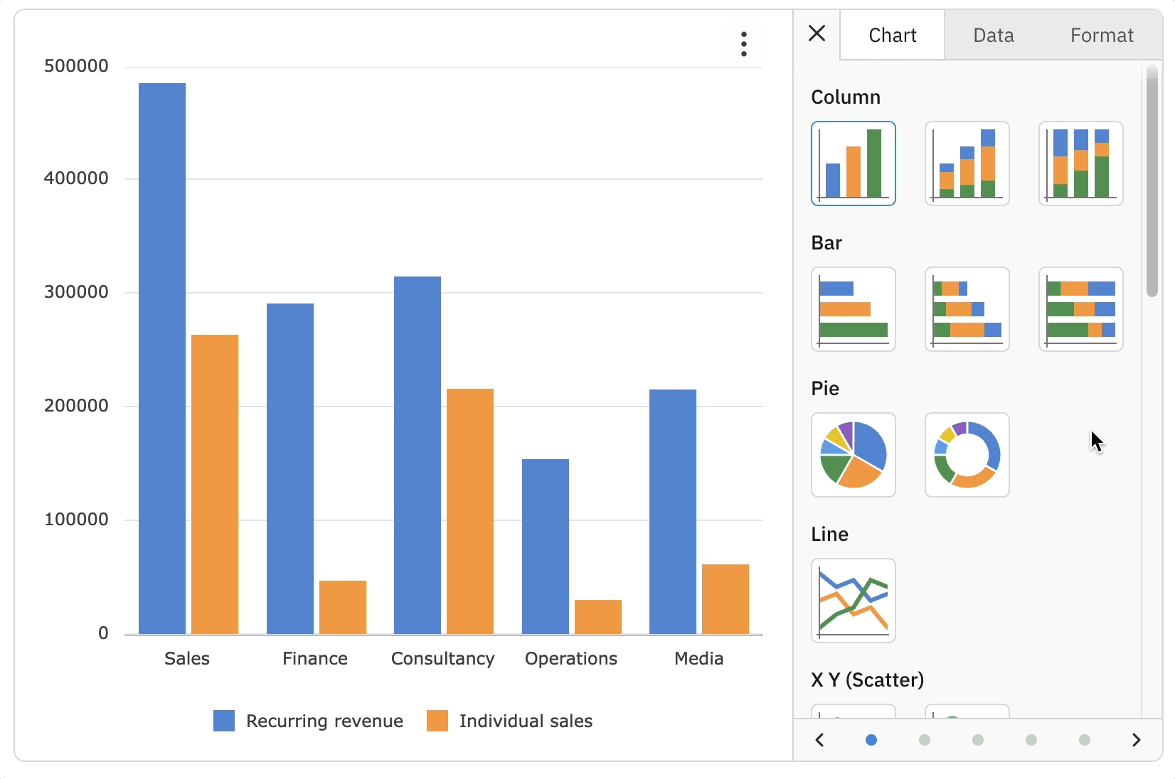 Create a pop-up chart of your selection. Within your SuperTable, select some dimensions and measures, right-click and choose ‘Chart Range’. Here, you will be presented with a selection of charts. Click on your desired choice and you will be presented with a pop-up chart within your dashboard. This is read-only and will not be stored in your SuperTables configuration and settings. It is designed to help your Dashboard users with some extra self-service analytics on the SuperTables data.