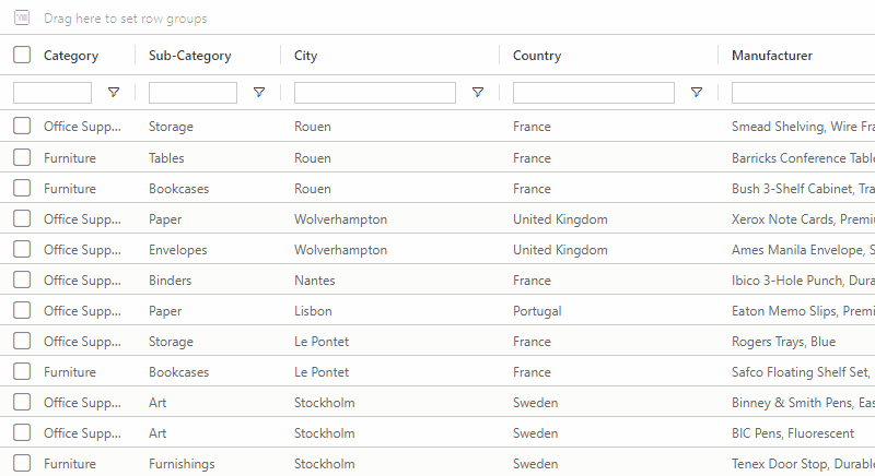 Dragging and dropping headers into the grouping bar will allow the users to drill down on their data. To enable this feature, go to the configuration screen under the Appearance tab, under the Layout Options header you can tick the ‘Enable group bar’. Also, within the Appearance tab under Behaviour options, you will see ‘Use multiple columns for grouping’ this will group all the columns you wish to drill down in a group within the view.
