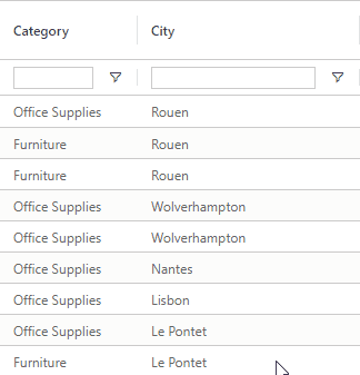 Enter text into the search box underneath the column header you wish to filter. This will instantly filter inline and can be done on multiple columns simultaneously and offer your dashboard users the most flexible way of filtering their rows based on column values.