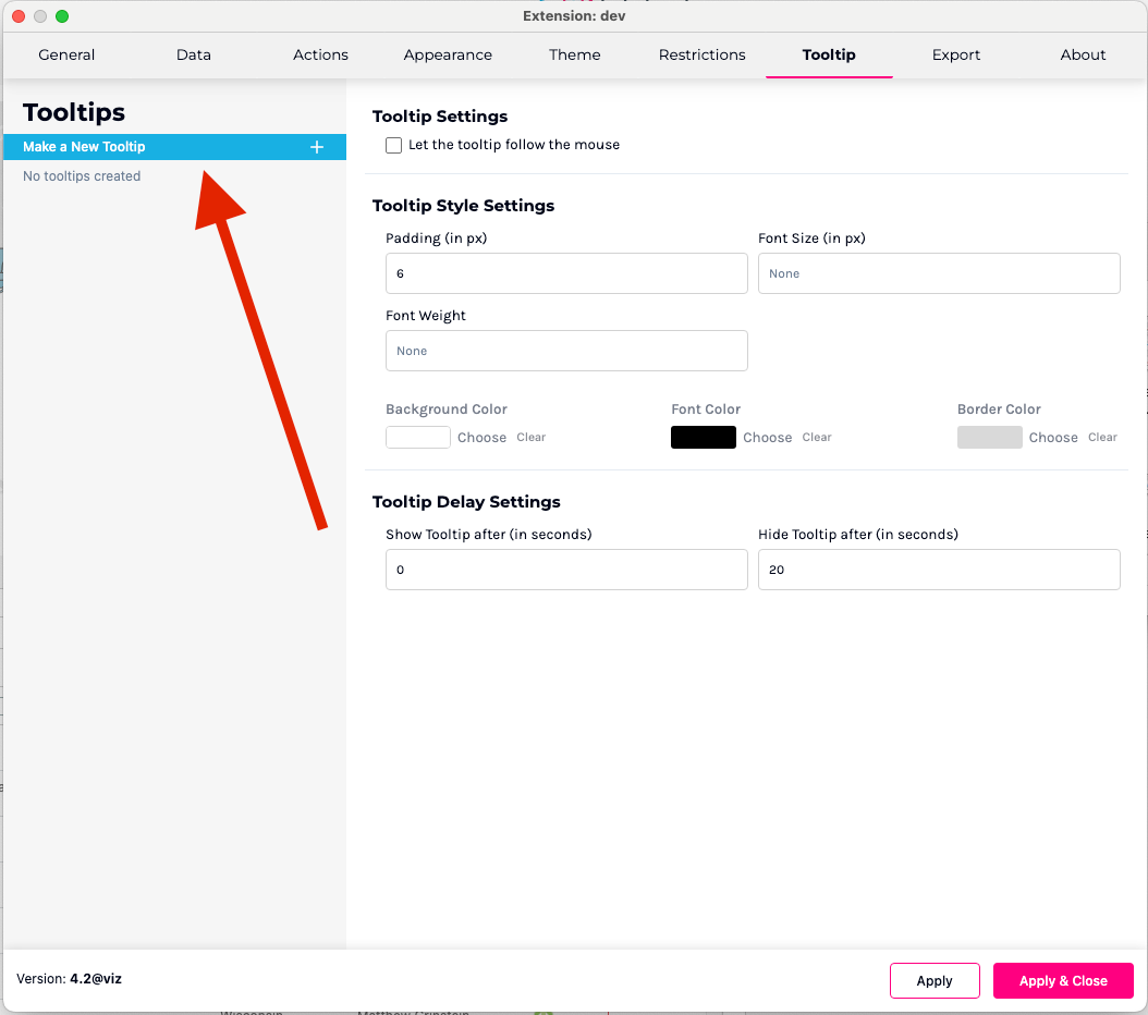 On the left side of the Tooltip tab. There is a button that says make a new tooltip. Click make a new tooltip on there.
