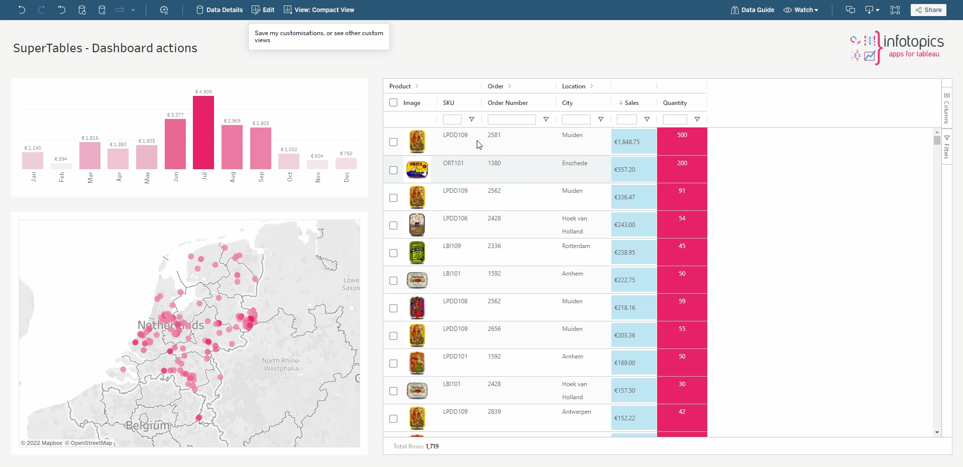 Create your own custom views of SuperTables! Each user can create their own unique view of their dashboard containing SuperTables. Wish to just see a compact view, sales view or a customer only view? Save as many views as you wish to be easily accessible every time you log in. You can make any view your default as well as making them available for your team!