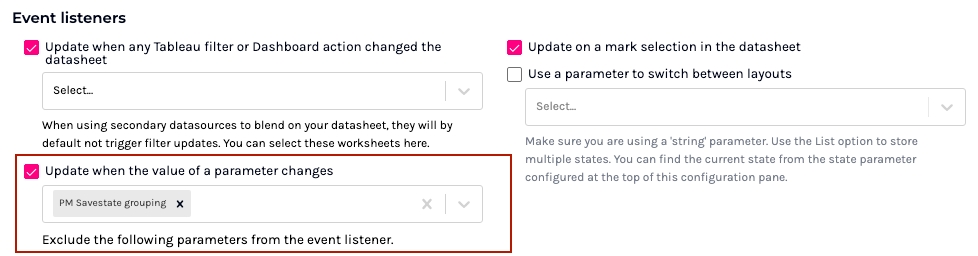 Update when any Tableau filter or Dashboard action changed the datasheet