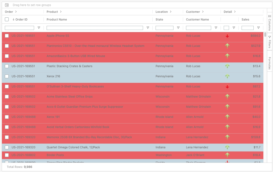 By default the conditional coloring is only applied to the column but with option you can apply it to the whole row instead.