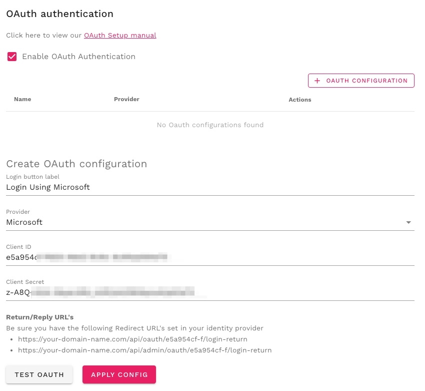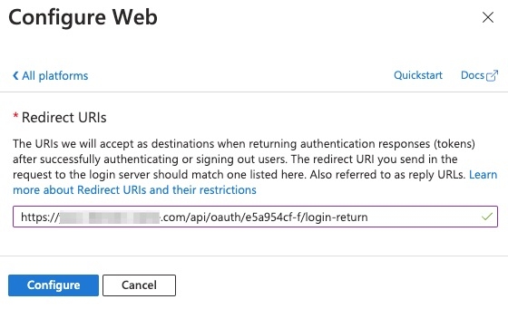 When you entered the client ID At the bottom of the page you will find two return URLs. These URL's need to be added to the App registration in Azure. Copy the first one.