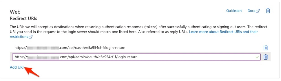 Once the first return URL has been setup, it is easy to add the second return URL by clicking the Add URI button.