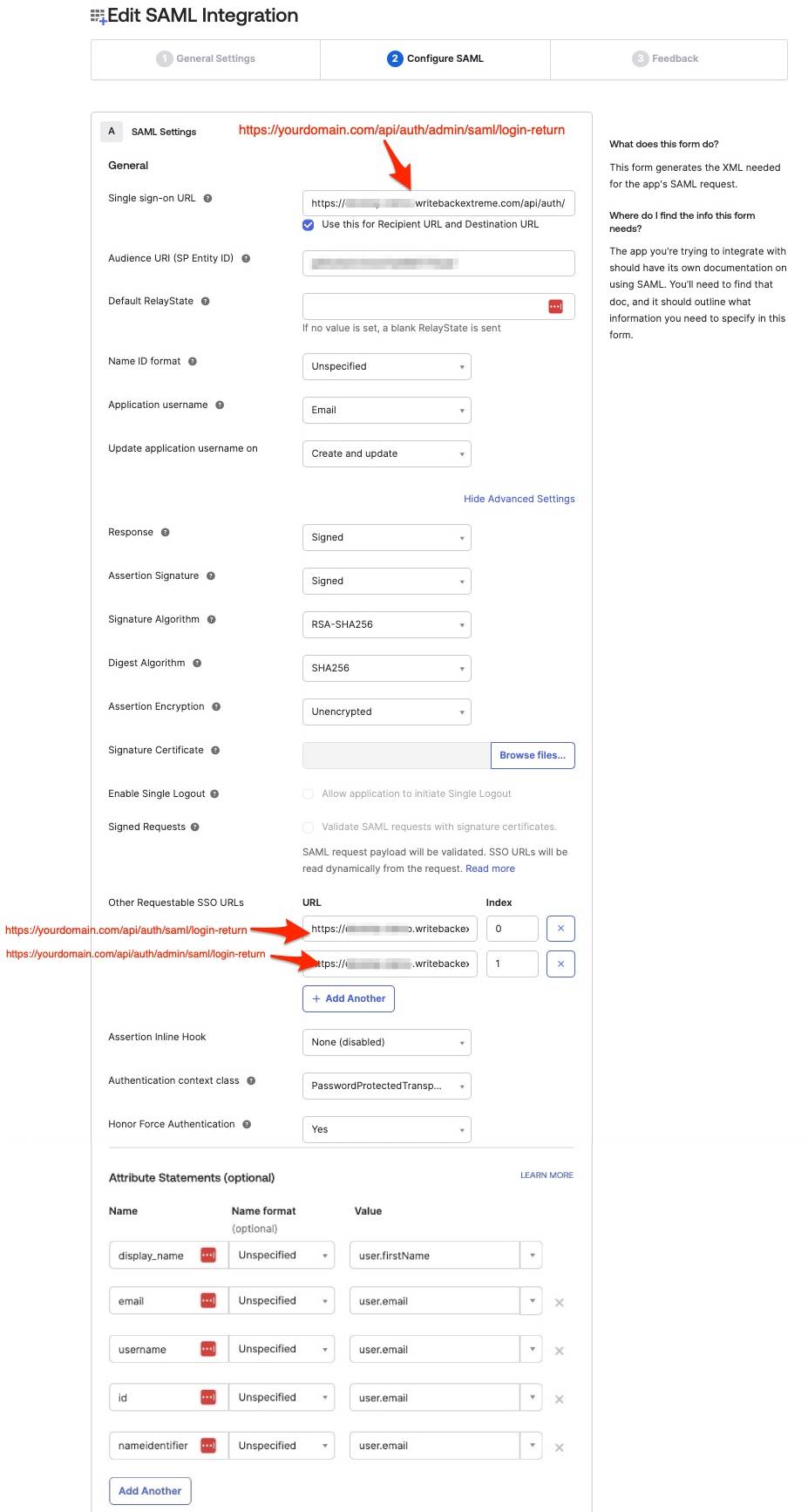 When there is any error while setup we advise to use the Chrome browser plugin SAML tracer to see what data is sent to WriteBackExtreme. Also https://samltool.io/ is a good tool to check the SAML payload.
