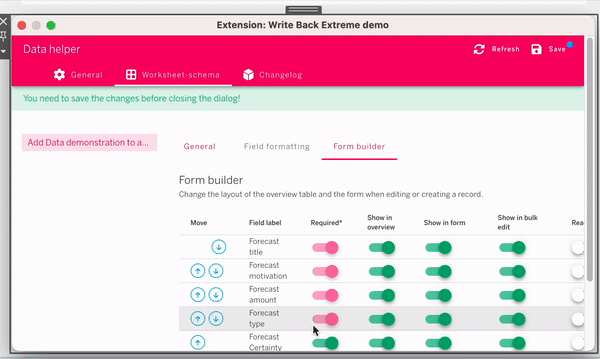 It may not be necessary for all of your users to have the ability to use the bulk edit feature. In the management console, head to the schema(s) under the actions tab click the ‘…’ menu to see the permissions of the schema. See GIF where we turn on this permission. Have full control of which features your users have access to. Reload WriteBackExtreme to implement changes.