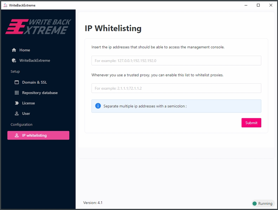 203.0.113.45Network ranges Use CIDR notation to allow a full range of client IPs.