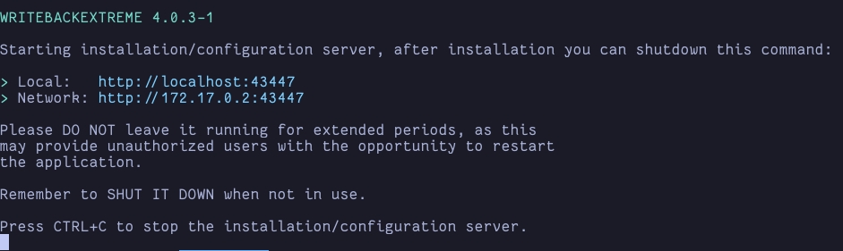 sudo /usr/local/share/writebackextreme/writebackextreme-amd64 installer --port=8080Was this helpful?