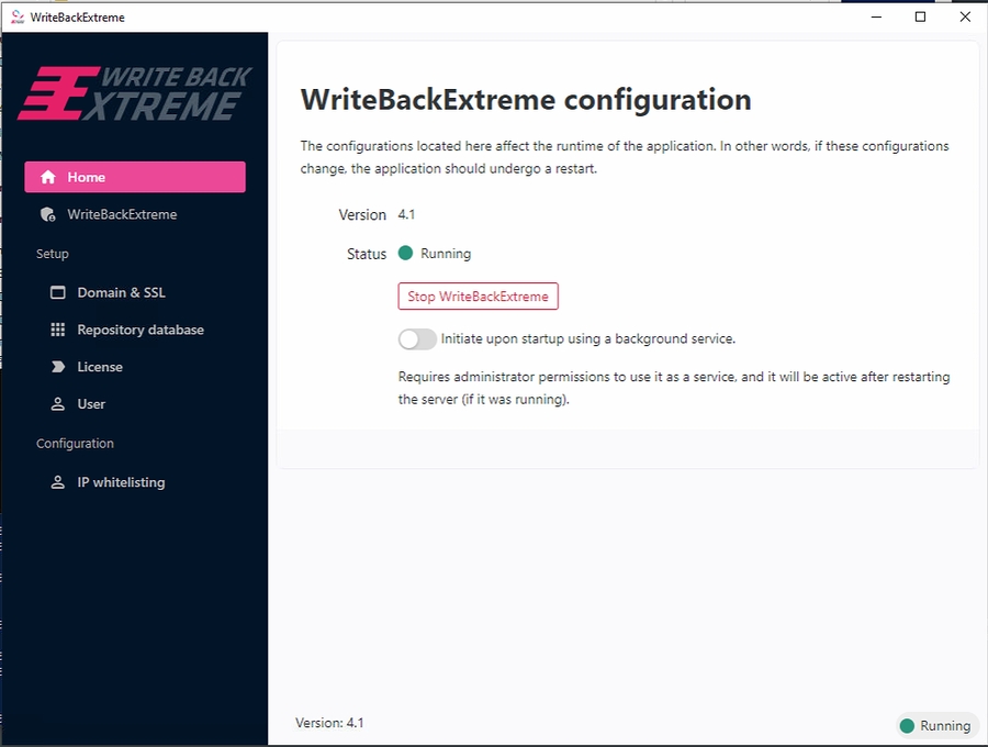 WriteBackExtreme.exefile with administrator privilegesWriteBackExtreme will automatically start. It could take some additional time to start since because of running updates on the first run.