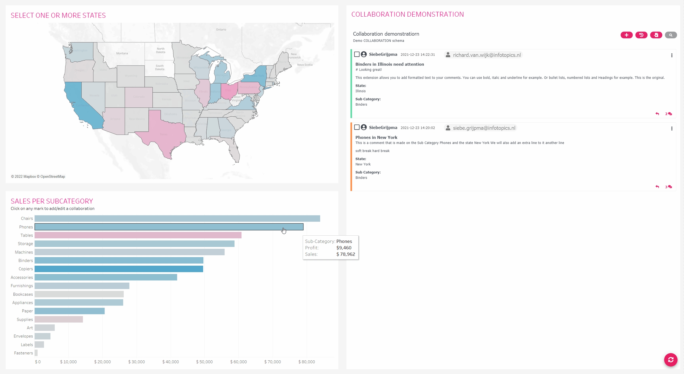 The Collaboration template is a part of the Add Data module. It allows you to create annotations and comments on marks in your visualizations from within your dashboard. Consequently, this improves the collaboration in dashboards and makes it highly efficient. Keep track of your expert annotations and conversations on your most valuable assets.