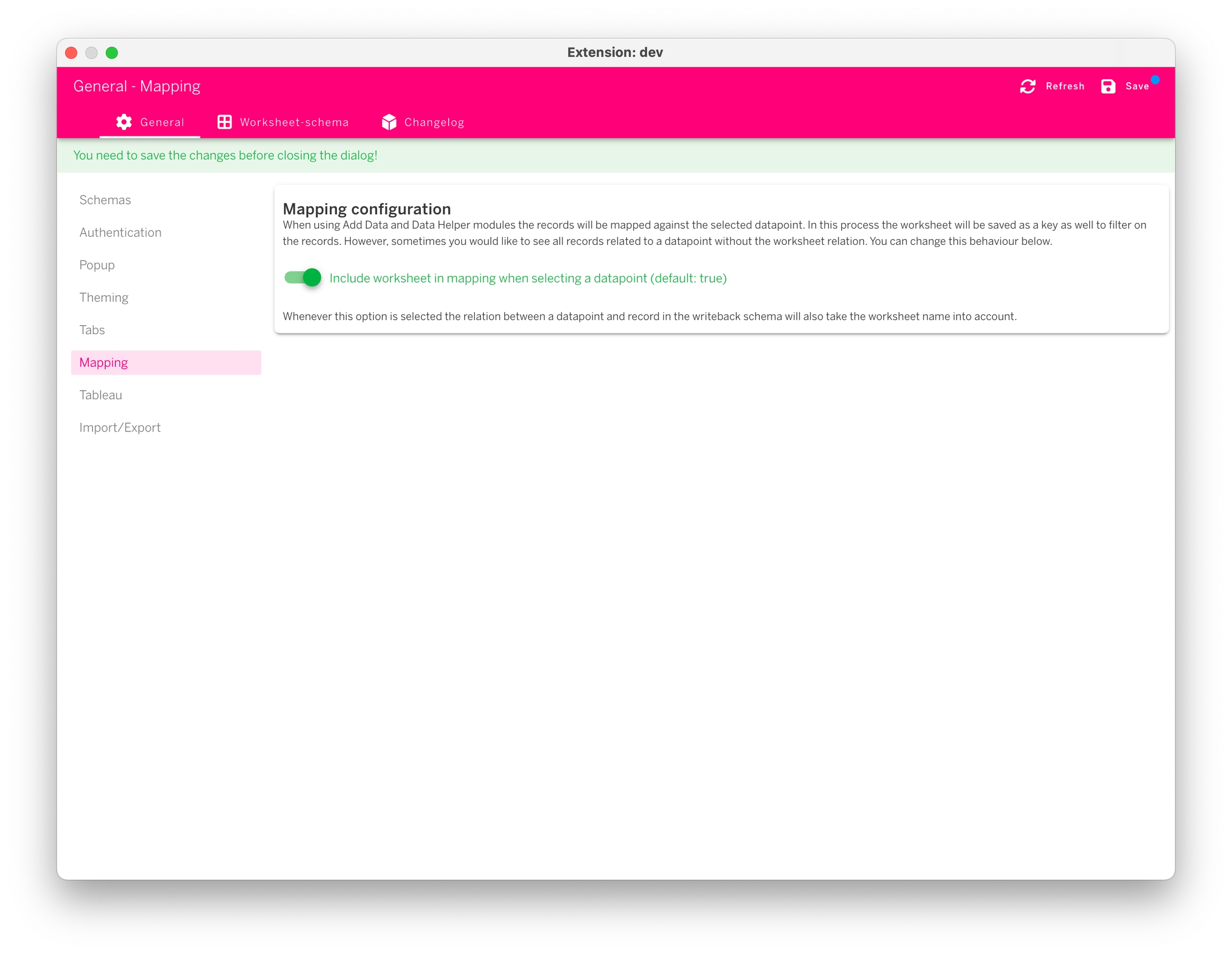 When using Add Data and Data Helper modules the records will be mapped against the selected datapoint. In this process the worksheet will be saved as a key as well to filter on the records. However, sometimes you would like to see all records related to a datapoint without the worksheet relation. You can change this behavior below.