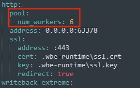 When this shows a lot of Memory or CPU consumption it could be a good idea to increase the number of workers. Alter the wbe.config.yaml configuration file and add a num_workers option to the http part like so: