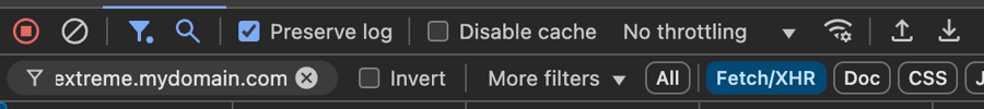 4. The next interesting page is the network tab. This displays all network traffic that is generated by the dashboard. To get a good overview of the communication of WriteBackExtreme, filter on the requests on Fetch/XHR and put your WriteBackExtreme domain into the search box: