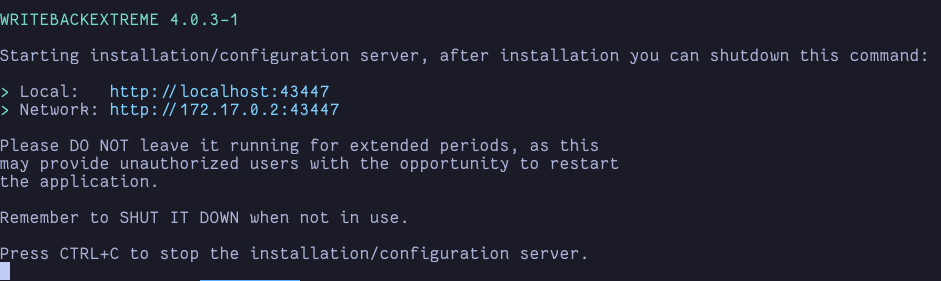 Open the appropriate “Network” URL in a web browser to commence the application installation process. Once the installation and configuration procedures are concluded, it is strongly advised to close the installation/configuration interface.
