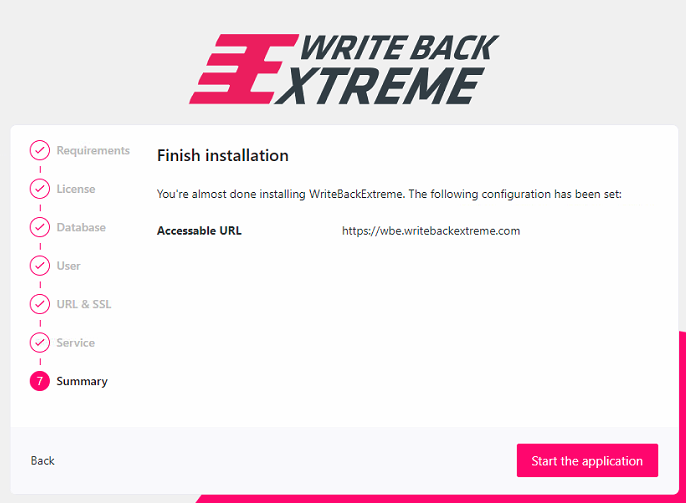 A summary will be shown and WriteBackExtreme will install and start whenever you hit Start the Application.