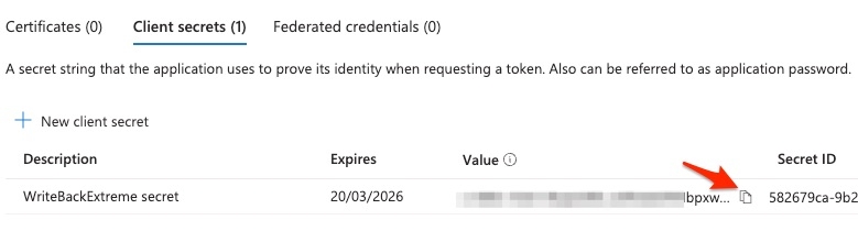 Copy the secret. You need to provide this in the WriteBackExtreme Management console.