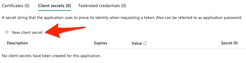 Click the `New client secret` button
