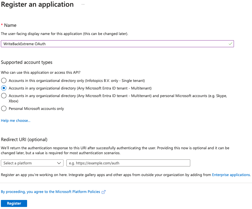 Give the application a name (Preferably with the name `WriteBackExtreme` in it).