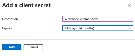 Secret expiration is your responsibility to manage. WriteBackExtreme will not notify when this expires.